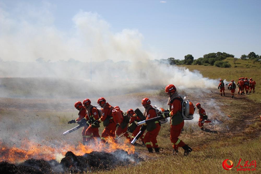 突发森林“火灾” 武警森林官兵迅即出动进行扑救