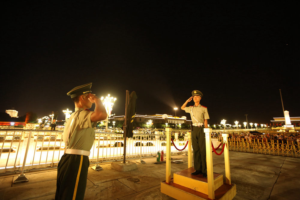 留队战士与退伍战士进行交接仪式 。 李超摄