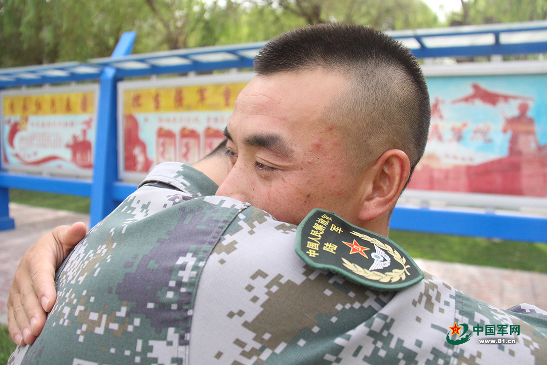 送老兵离队那天,杨辉紧紧拽着陈永鑫的包,双眼哭得通红。