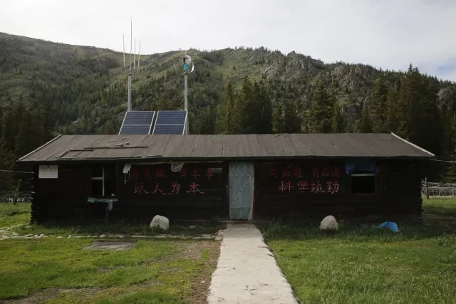哨前青松林立,远山雪峰在望,额尔齐斯河在哨所后方潺潺流淌,连空气中都弥漫着青草和山花的芬芳,这样一个远离都市的地方,除了一座风光互补的发电设备,从内到处散发着原始的气息。