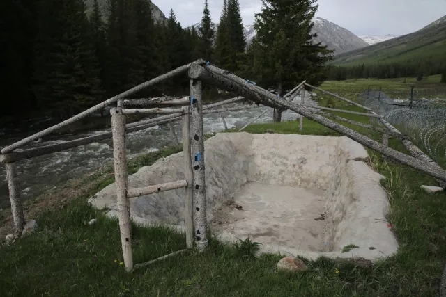 在哨所右后方,紧邻额尔齐斯河的高处有一个5米长、3米宽、1米多深的水池,池上方用木棍撑起塑料布,这是官兵自建的“游泳池”,每周将冰凉的河水抽到池中,晾晒温热后使用,解决了洗澡的问题。