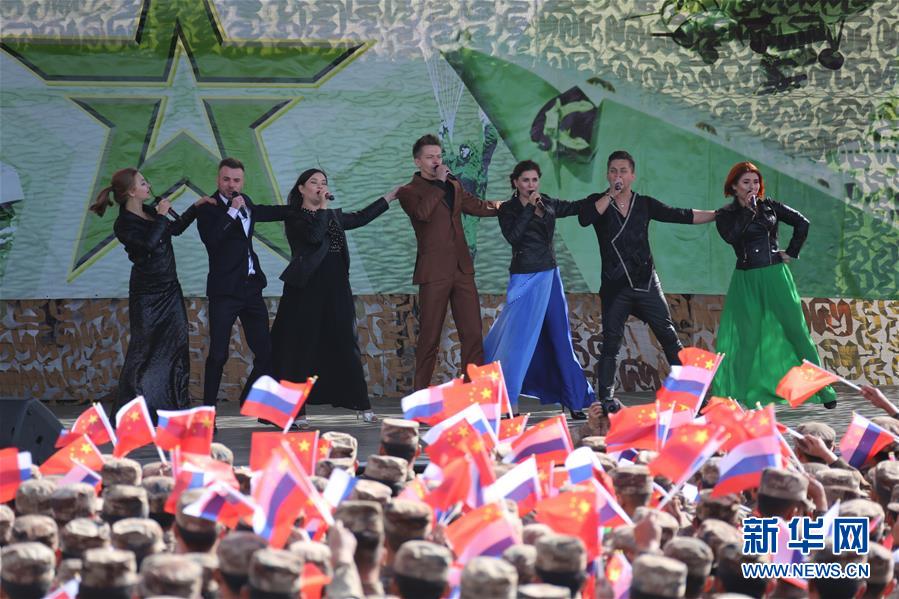 9月14日,在俄罗斯楚戈尔训练场,俄军战地文艺队参加中俄战地联合文艺演出。