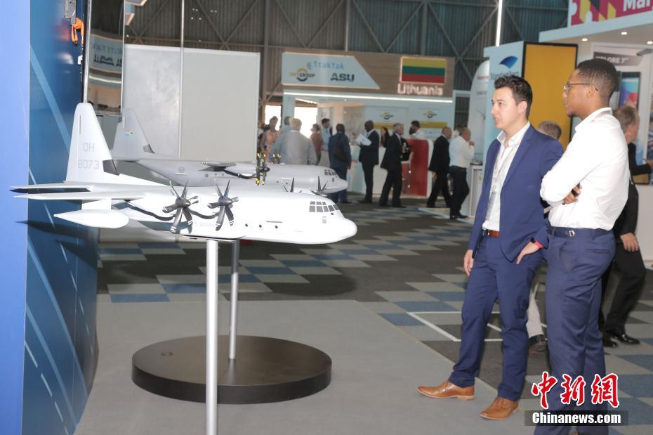 9月19日,为期五天的2018年非洲航空航天与防务展在南非比勒陀利亚开幕,中国国家国防科技工业局组织6家军贸公司以“中国防务”国家展团形式参展,旨在推动中国军工优势装备“走出去”。图为美国洛克希德·马丁公司的新型飞机亮相此次防务展。中新社记者 王曦 摄