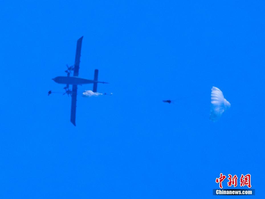 图为参赛官兵实施伞降。 刘治鑫 摄