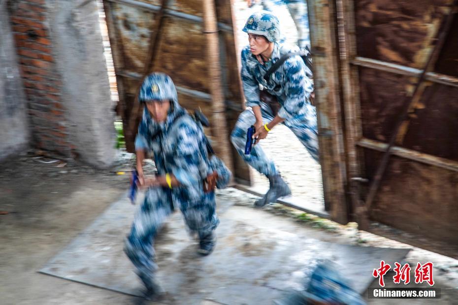 图为快速冲入击毙“歹徒”。 刘治鑫 摄