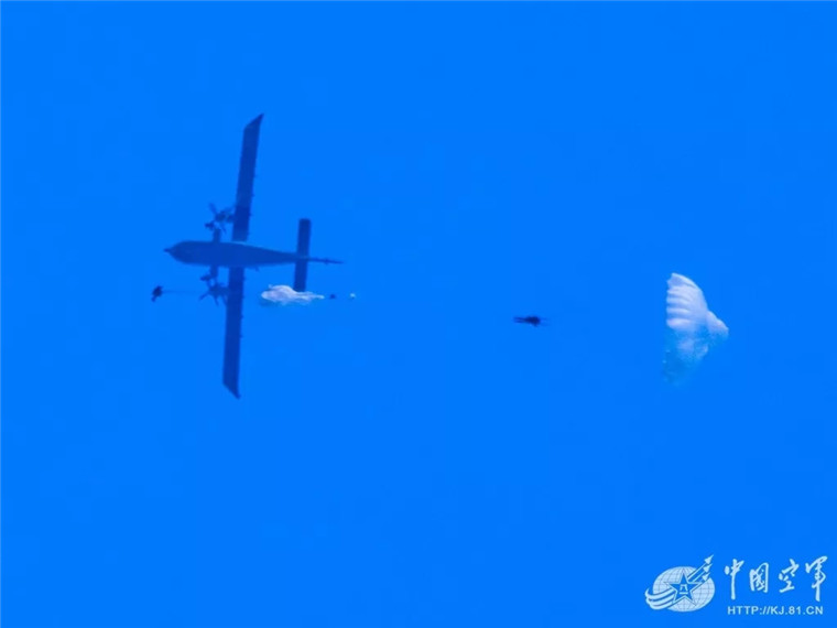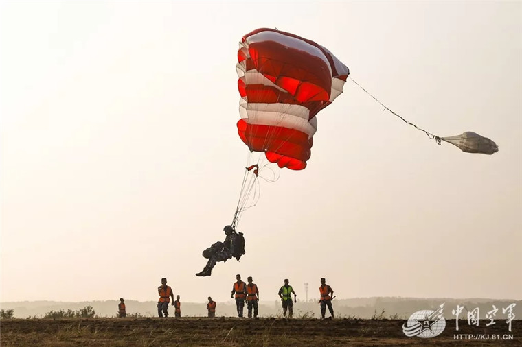 参赛官兵实施伞降。