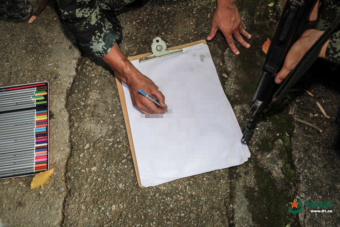侦察小组将侦察到的大巴车情况和“不法分子”位置标记出来。