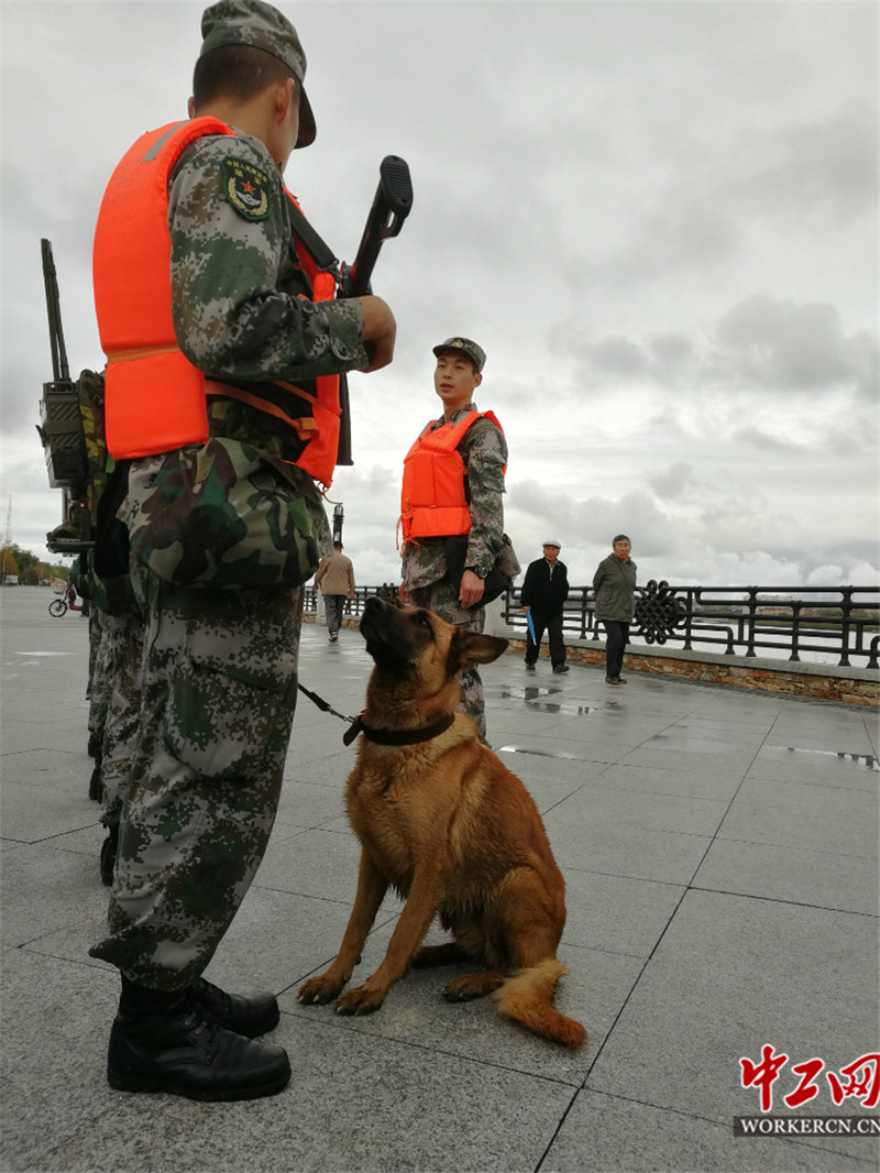 ↑徒步巡逻间隙,军犬“玛莎”凝望着“主人”,等待他下一步指示。