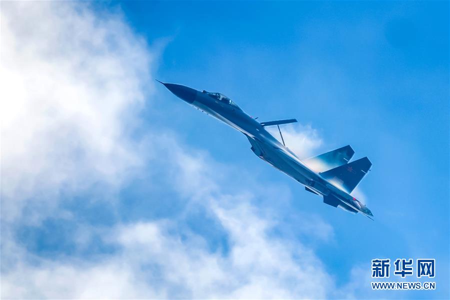 训练中,空军“先锋飞行大队”飞行员驾驶战机在空中展开减速板,进行实战背景下的战术机动(9月4日摄)。 新华社发(杨盼 摄)