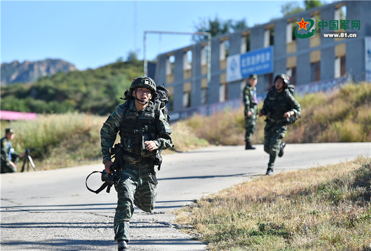 9月24日,在2公里武装越野射击比武课目中,参赛队员在进行最后冲刺。曹峰摄