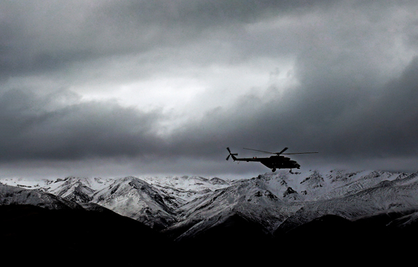 直升机巡逻于边境雪线