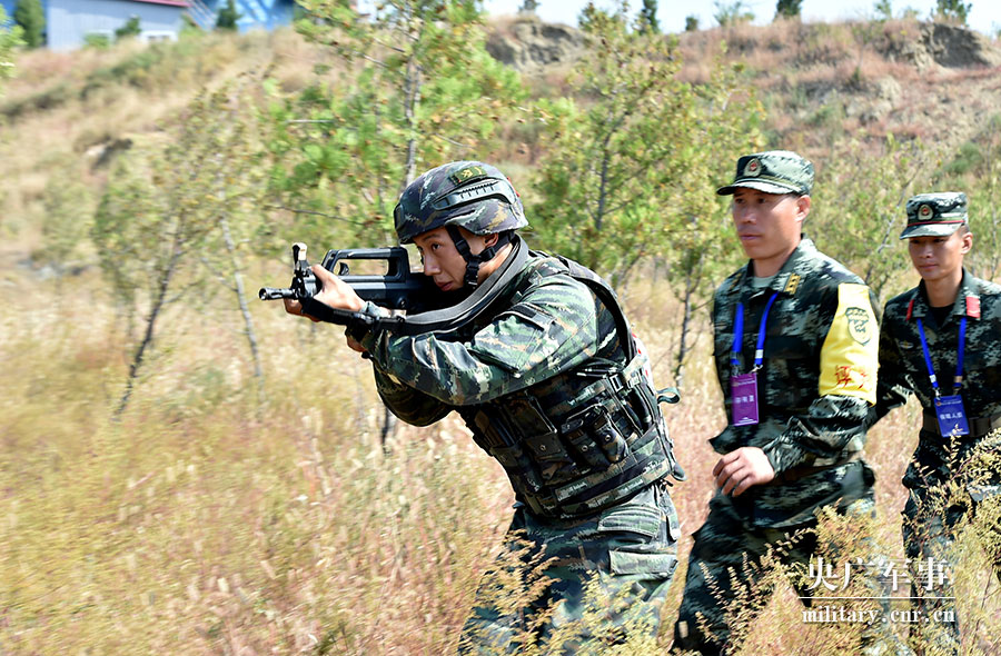 9月25日,参赛队员在进行搜索识别射击课目比武。曹峰摄