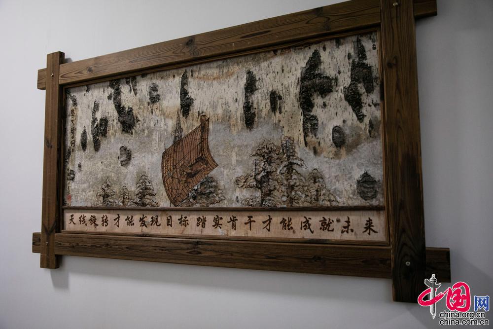 树皮画除了颜值高,内涵也相当丰富。据了解,树皮画在设计创作环节,就结合树木自然纹理“依势而为”,完美地把漠河雷达站的建站史融合进去。成画后辅以文字,展现出该站官兵不惧严寒、不畏艰苦,在艰苦中作为、在坚守中强军的精气神。中国网记者 董宁 摄影
