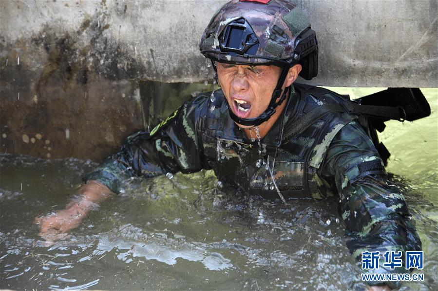 9月28日,在个人全能课目中,一名参赛队员奋力通过双升水池。 “未命中!” “未命中!” 燕山腹地,武警部队第二届“巅峰”特战比武竞赛搜索识别射击课目的比武现场,不断传来现场裁判员的无情裁决。 拿到比武竞赛“资格证”的,是武警部队的300余名特战队员。竞赛开始不久,这群代表武警部队反恐特战最高能力水平的队员们便尝到了失利和挫败的苦味。 “我们要锻造的是刀刃上的刀尖。”武警部队参谋部情报局局长张晓奇说。 新华社发(李涛摄)