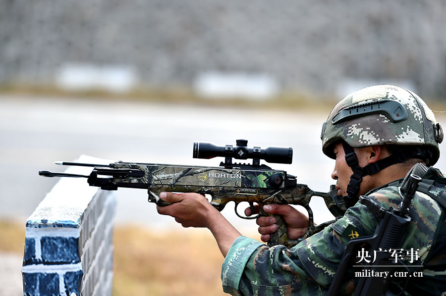 9月26日,在个人全能课目中,参赛队员在进行弓弩射击。曹峰摄