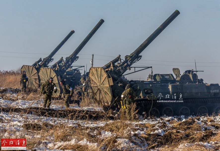 2S4“郁金香”240毫米自行迫击炮则是当今口径最大的自行迫击炮。图为俄军2S4重型自行迫击炮部队正在发射阵地展开,可见炮管已上仰。