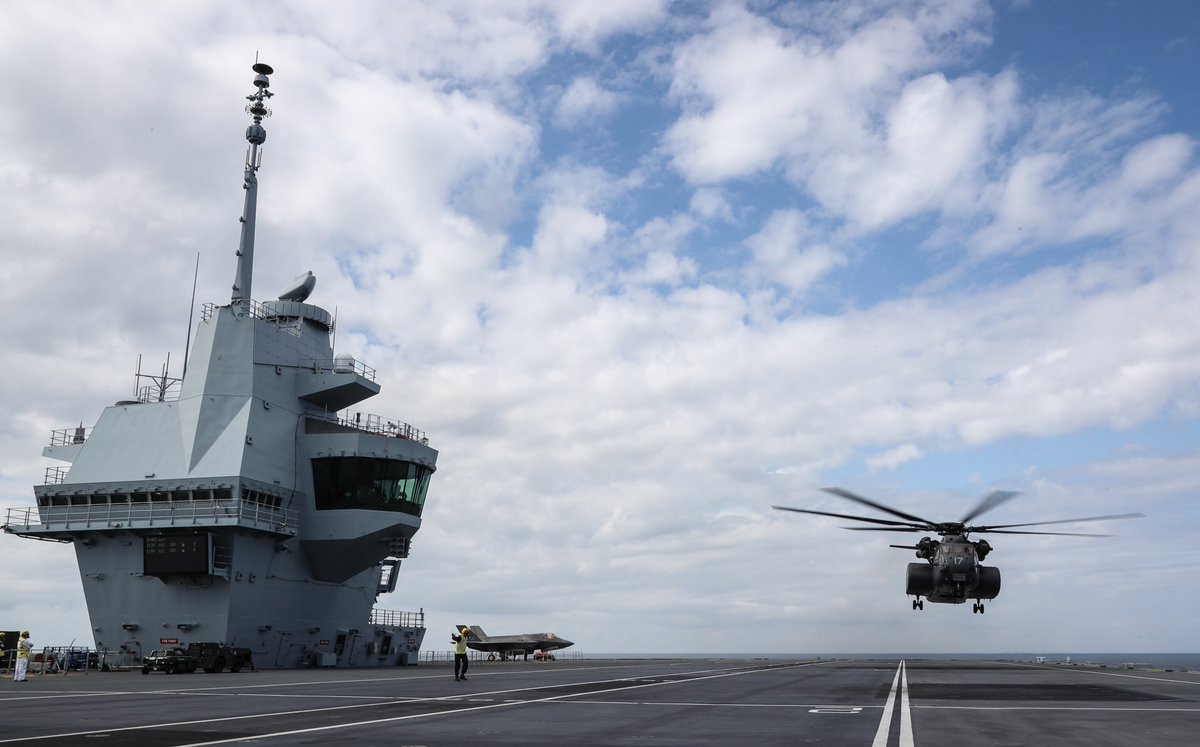 【环球网军事综合报道】据英国海军伊丽莎白女王号官方社交媒体发布的照片显示,西方世界最大的直升机MH-53E“海王”直升机在英国海军伊丽莎白女王号航母上首次降落,伊丽莎白女王号航母的社交媒体还表示明日将有更大的飞行器“上航母”。