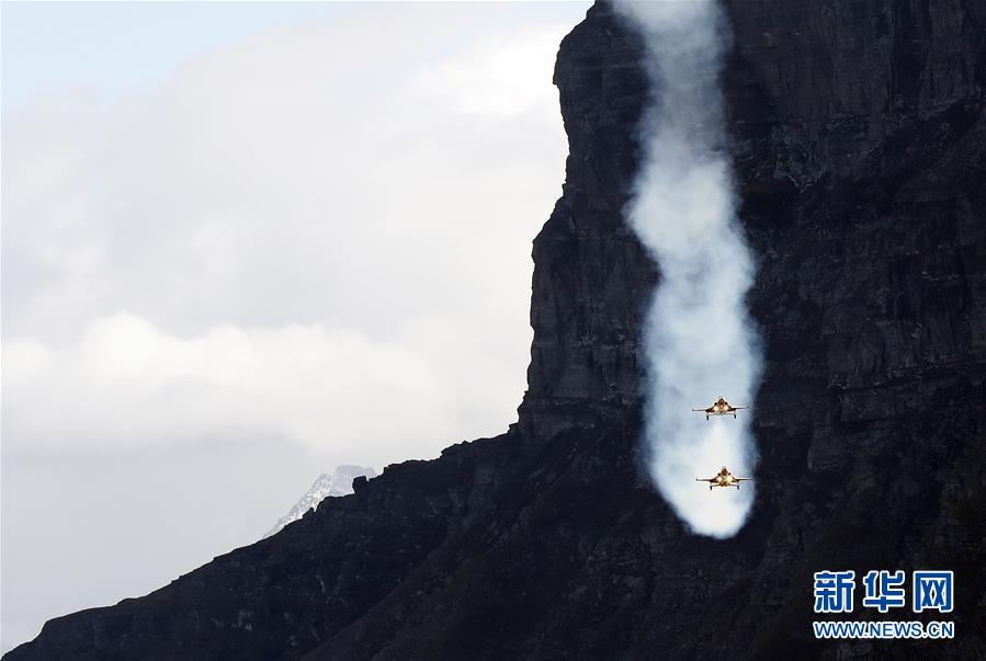 10月10日,在瑞士迈林根空军基地附近,瑞士空军飞机进行飞行表演。