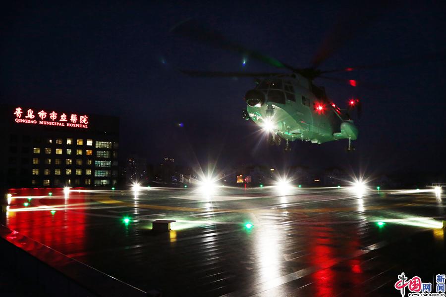舰载直升机市区跨昼夜起降 军地协同开展医疗后送联合演练