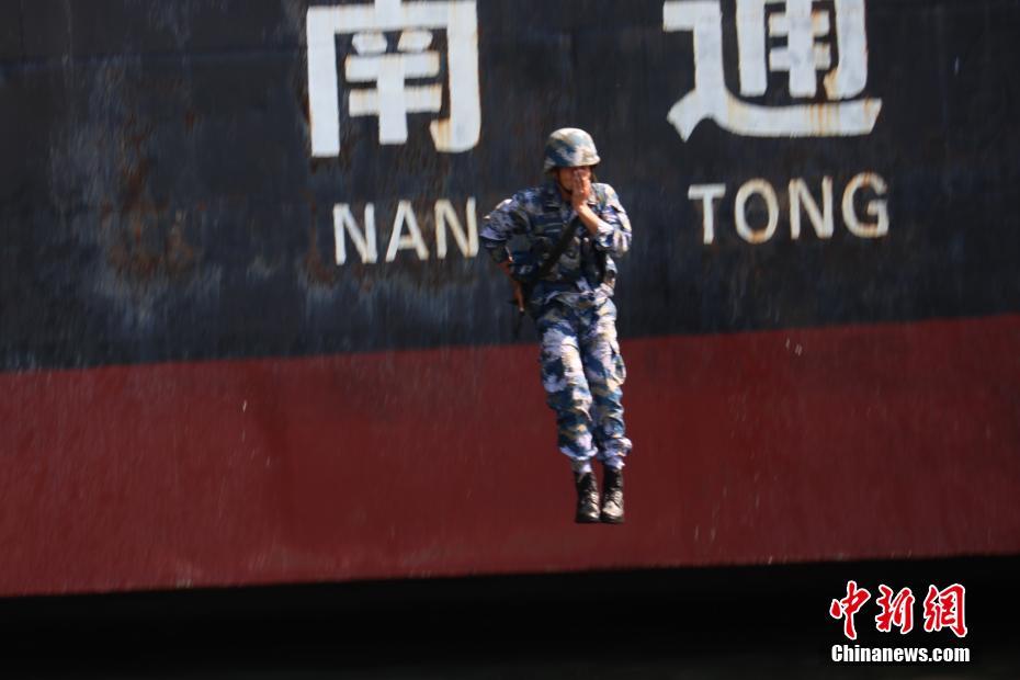 海军陆战队员进行武装跳水训练的瞬间。李纯 摄