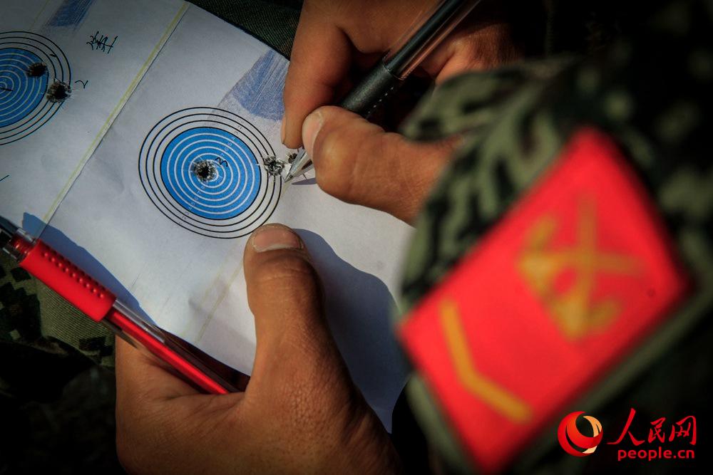 一名狙击手正在研究自己的靶纸。蔡霖伟摄