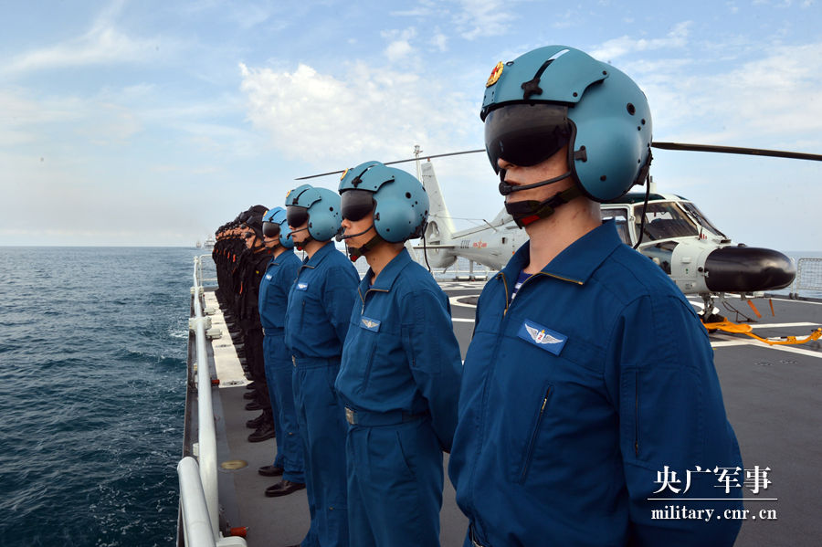 直升机组和特战队员位飞行甲板分区列队准备接受检阅。张海龙摄
