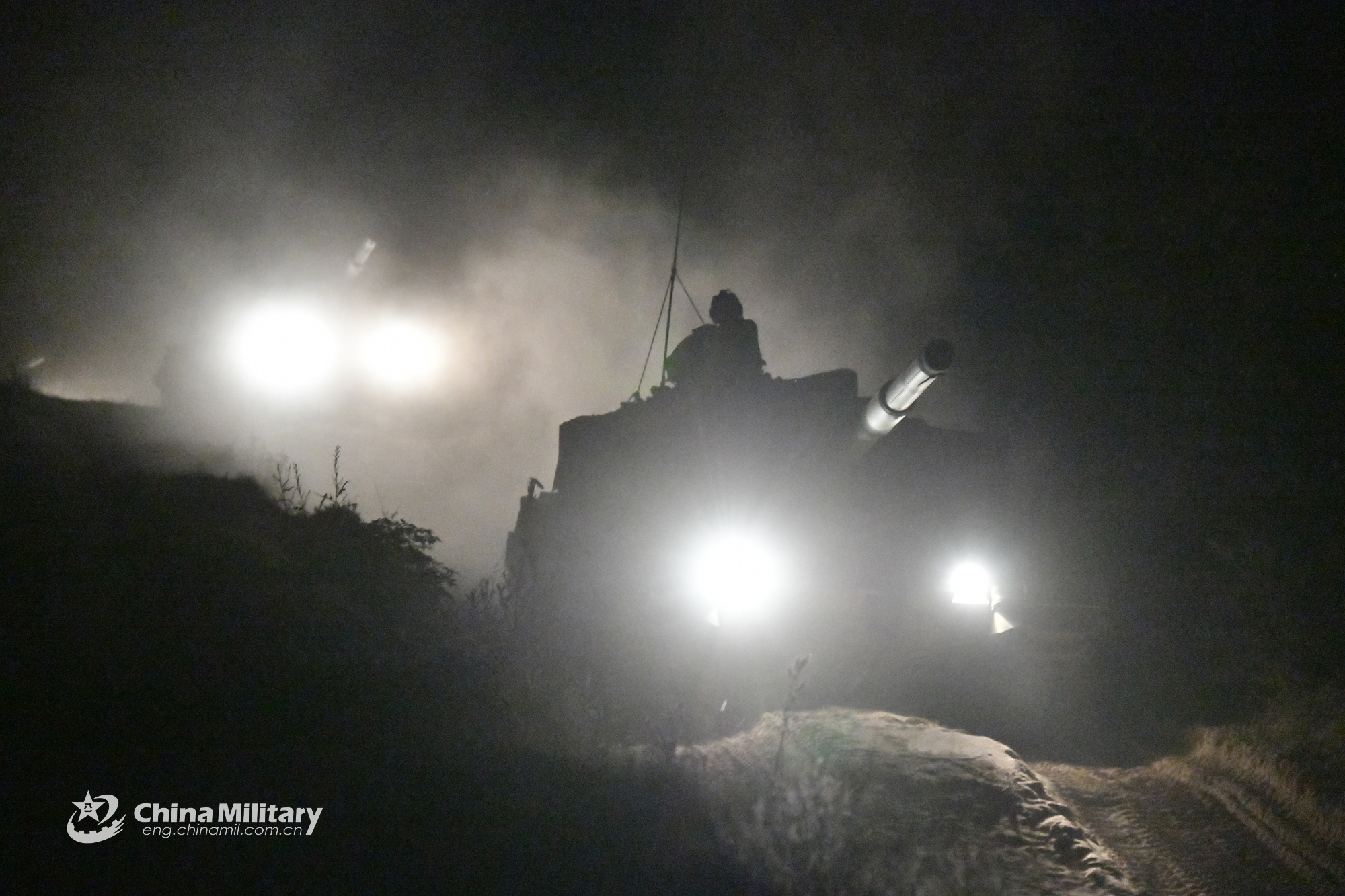 东部战区陆军某旅夜色中装卸载坦克考验野战机动能力