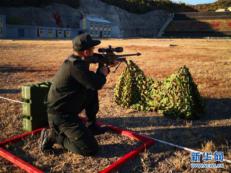 10月18日,在多种姿势狙击课目中,参赛队员采用跪姿进行狙击。 “锋刃-2018”国际狙击手射击竞赛18日在燕山深处武警某训练基地开幕,来自中国、白俄罗斯、中非、匈牙利、以色列、巴基斯坦等21个国家的100余名狙击精英展开同场竞技。 新华社记者 刘新 摄