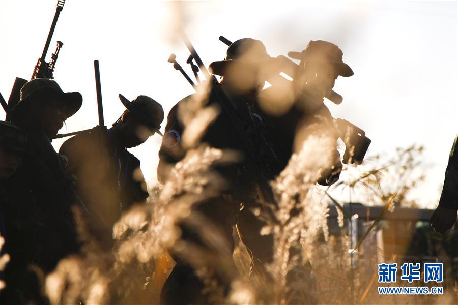10月18日,参加“锋刃-2018”国际狙击手射击竞赛的参赛队员向比赛场地进发。 “锋刃-2018”国际狙击手射击竞赛18日在燕山深处武警某训练基地开幕,来自中国、白俄罗斯、中非、匈牙利、以色列、巴基斯坦等21个国家的100余名狙击精英展开同场竞技。 新华社发(王涛 摄)