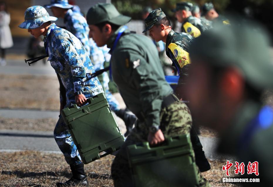 10月18日,由中国武警部队举办的“锋刃-2018”国际狙击手射击竞赛在北京燕山深处武警某训练基地拉开帷幕,来自中国、白俄罗斯、柬埔寨、巴基斯坦、荷兰等21个国家军警宪同类部队的100余名狙击精英同场竞技。这也是中国人民解放军陆、海、空军特种部队首次派员参赛。本届竞赛以“实战、精英、高难、综合”为导向,按照“参考真实战例、融入中国元素、打造经典原创”的思路,紧扣反恐作战特点,设置潜伏狙击、对抗狙击、价值目标选择狙击、远距离山地搜索狙击等12个竞赛课目。中新社记者 宋吉河 摄
