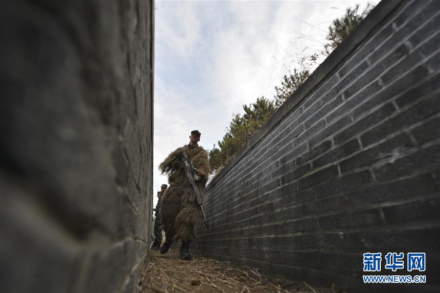 10月19日,在对抗狙击课目中,参赛队员通过堑壕。 新华社发(王涛 摄)