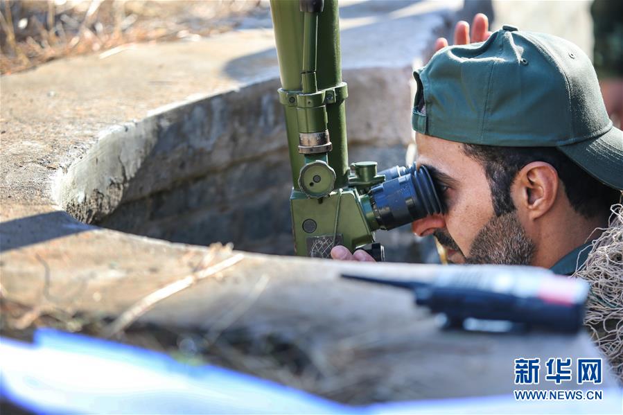 10月19日,在对抗狙击课目中,参赛选手利用潜望镜隐蔽观察目标。 新华社发(安晓惠 摄)