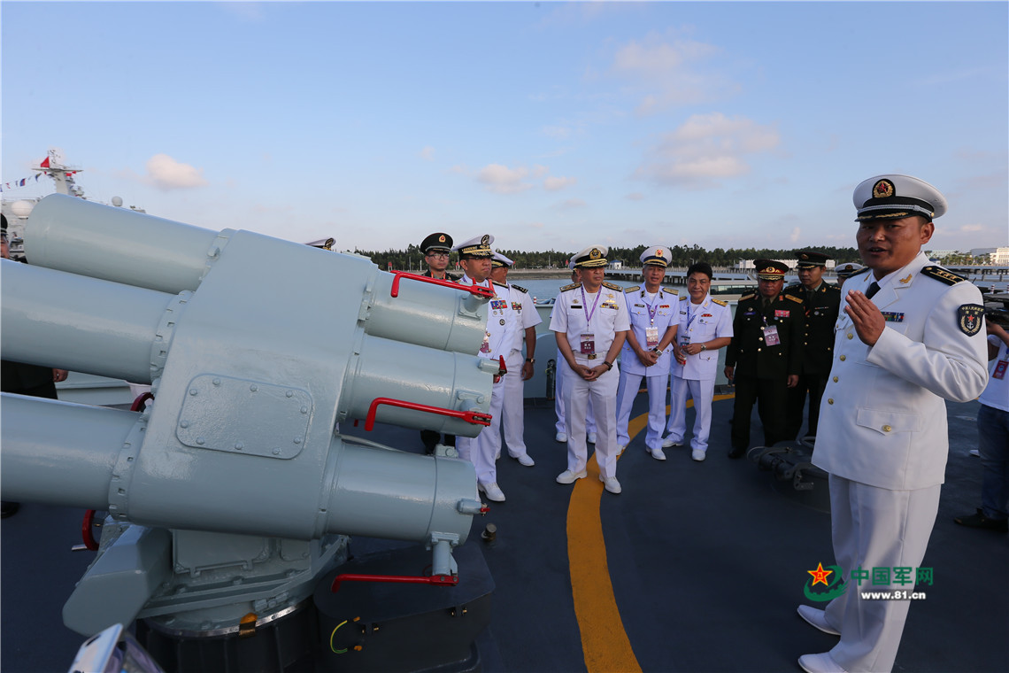 10月22日,中国-东盟“海上联演-2018”演习开幕式在湛江某军港举行。开幕式后,第一次演习计划会在岸基联合指挥部召开。东盟各国观摩团参观了岸基联合指挥部和中囯海军某新型导弹驱逐舰。张雷 摄影