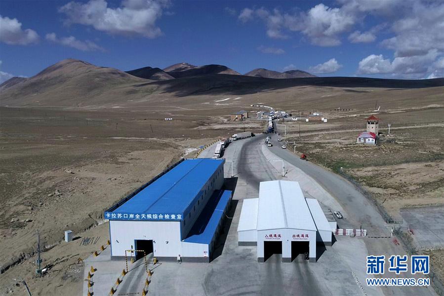 卡拉苏口岸塔吉克斯坦一侧等待入境的车辆排起了长队(8月1日摄)。 从喀什沿着314国道西行,在被称为“冰山之父”的慕士塔格峰脚下,本已折向西南的国道分出了一条西北向的支路。两条公路交汇的地方,就是帕米尔高原雪山下的中国和塔吉克斯坦边境口岸——卡拉苏。 新华社记者琚振华摄