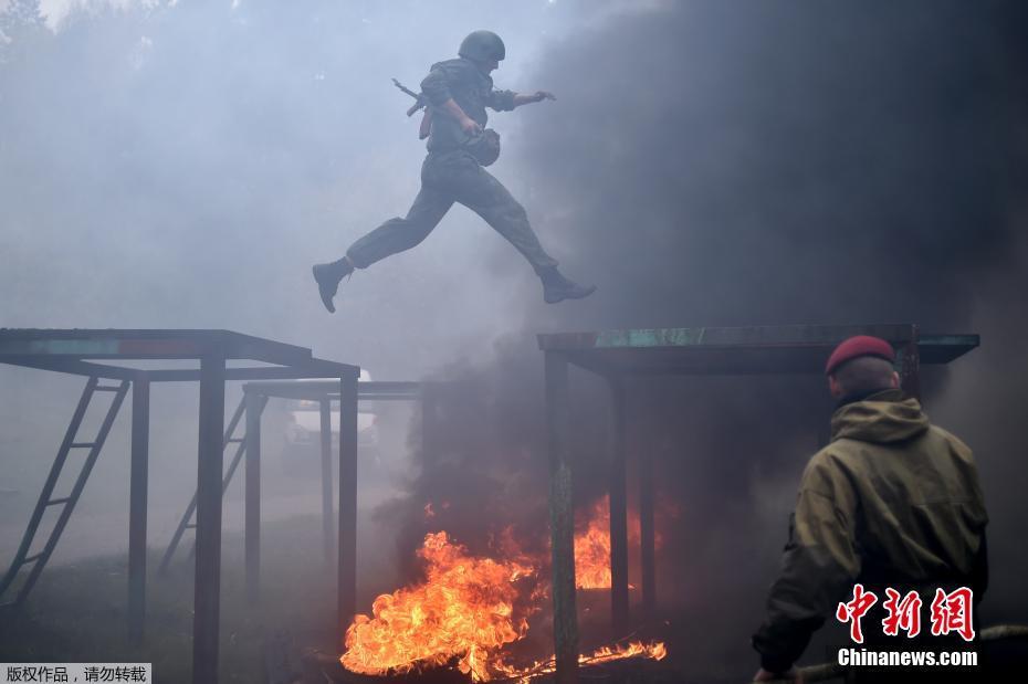 当地时间10月23日,白俄罗斯士兵在明斯克以西约30公里的沃尔夫什训练营内参加特种兵选拔资格考试。参选士兵们时而背起战友进行越野比赛,时而在子弹横飞的路上穿越火墙,令人看着心惊肉跳。