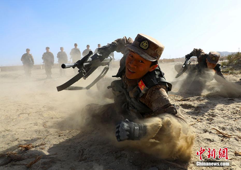 10月23日,新疆军区某训练基地训练场上尘土飞扬,新兵连组织全体新兵在沙地上开展战术基础动作训练。训练场上,全体新战士个个都是嗷嗷直叫的“老虎”。罗兴仓 摄