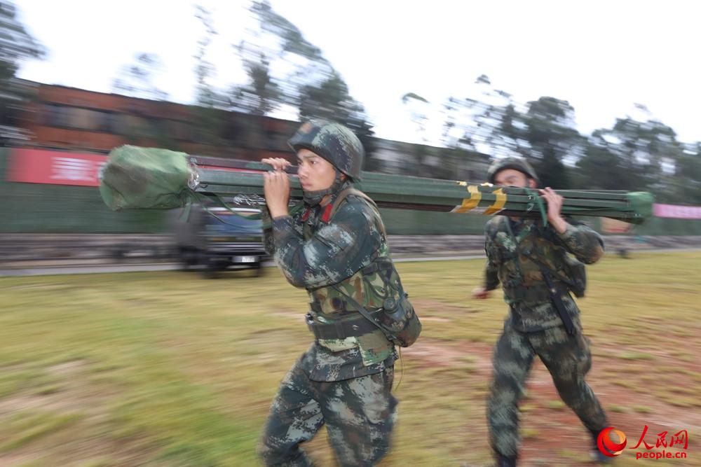 官兵快速搬运搭建帐篷物资。胡程摄