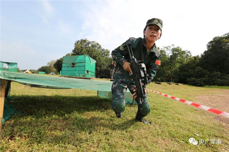 特种射击训练的中方队员王慧敏快速向目标地域机动。