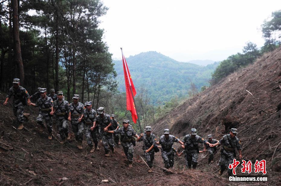 扫雷官兵手牵手以“趟雷场”的形式将6万多平方米安全土地移交给当地边民。蒋雪林 摄