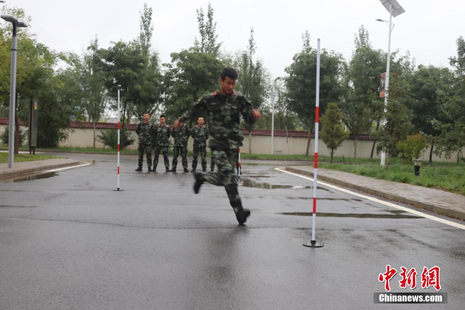 兰州营区武警官兵秋日练兵 单手举杠铃比拼真功夫