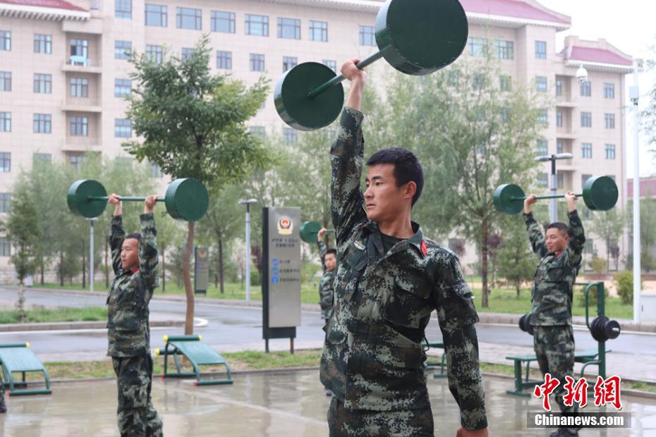 连日来,武警某部交通第二支队二大队在兰州营区强化通用五项科目训练,迎接支队年终军事考核。今年新增了徒手组合练习,官兵们在训练体能的同时,开展“手足走”、蛇形跑、单手举杠铃等项目的比拼。图为单手举杠铃训练。王晓博 摄
