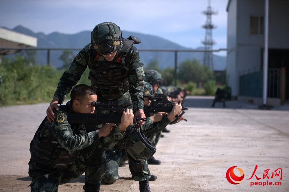 兰州营区武警官兵秋日练兵 单手举杠铃比拼真功夫