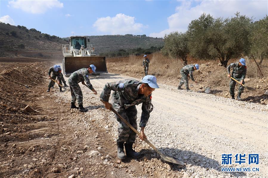 10月10日,在位于黎巴嫩南部靠近以色列边境的一处村庄,中国维和官兵在修路过程中修整边沟。 一条由中国第17批赴黎维和建筑工兵分队承建、被当地村民亲切称为“友谊之路”的道路的验收暨竣工仪式29日在黎巴嫩南部靠近以色列边境的一处村庄举行。 新华社发(蒙卓霖摄)