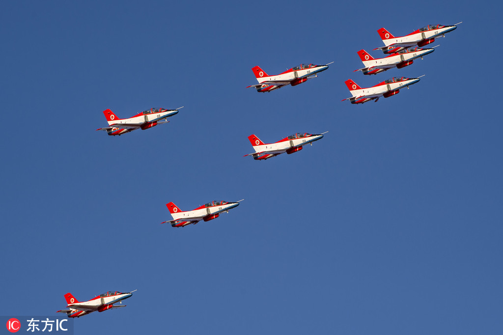 2018年10月30日上午,中国空军红鹰飞行表演队在珠海机场进行彩排训练。钱佰华/东方IC