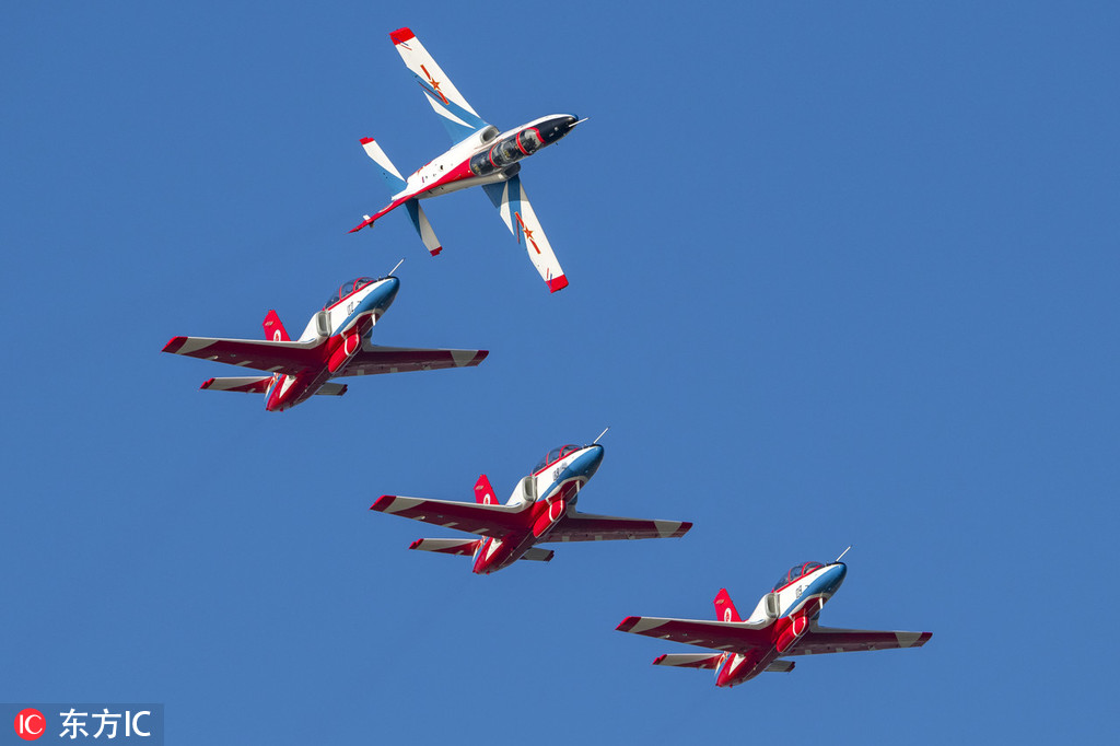 2018年10月30日上午,中国空军红鹰飞行表演队在珠海机场进行彩排训练。钱佰华/东方IC