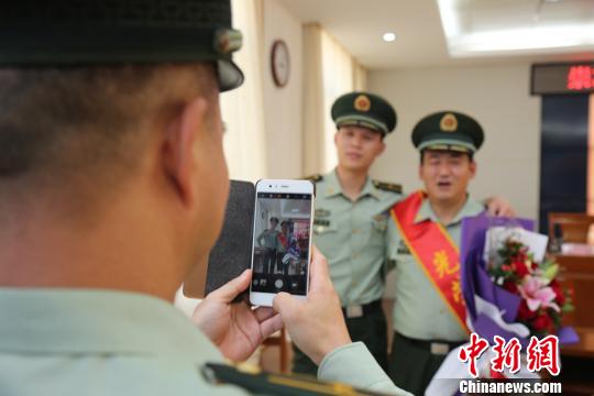 图为黎伟基与老战友合影留念。 杨瑞 摄