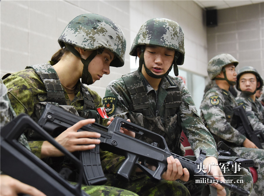 中方学员为外军讲解自动步枪的操作使用。段伟 摄