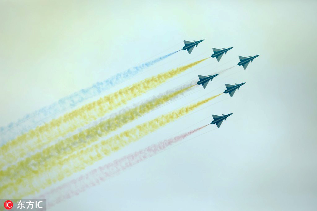 2018年11月3日,广东珠海,参加2018珠海航展的中国空军八一飞行表演队六架战机进行首次飞行表演训练。/东方ic