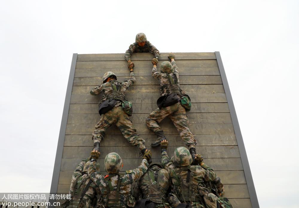 2018年11月2日,来自驻训单位的各个陆战精英在新疆军区某训练基地训练场,展开多科目协同强化训练,提升班组协同作战打赢能力。罗兴仓/人民图片