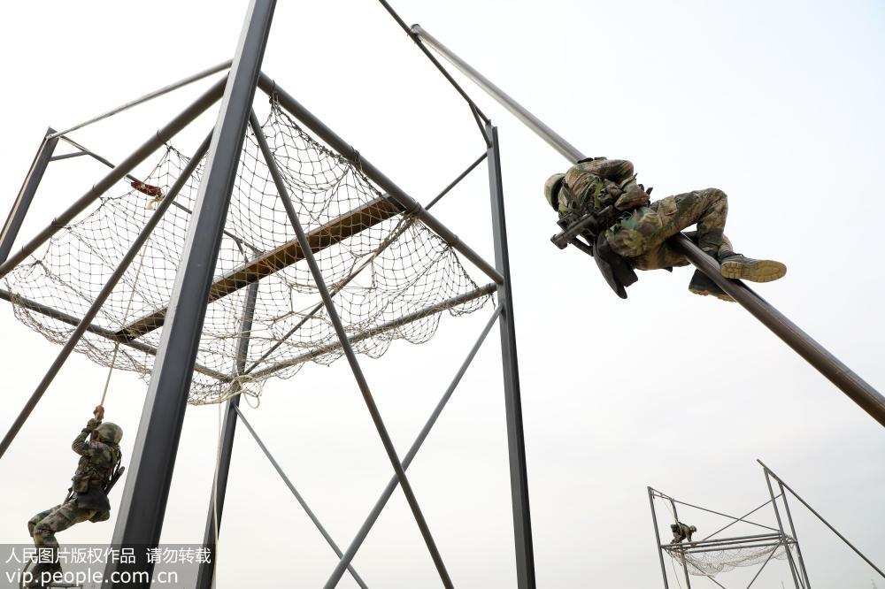 2018年11月2日,来自驻训单位的各个陆战精英在新疆军区某训练基地训练场,展开多科目协同强化训练,提升班组协同作战打赢能力。罗兴仓/人民图片
